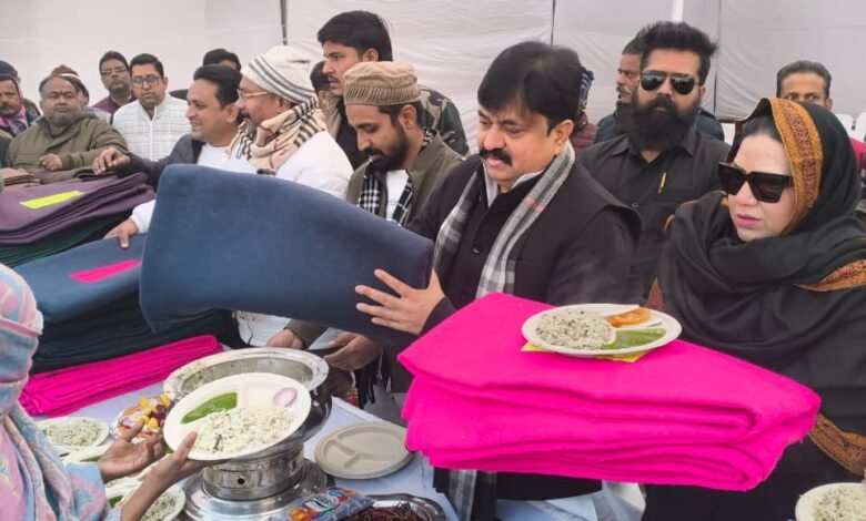 मकर संक्रान्ति पर पूर्व मंत्री आबिद रजा व पालिकाध्यक्ष फात्मा रज़ा ने कराया समरसता भोज, जरूरतमंदों को बांटे कंबल