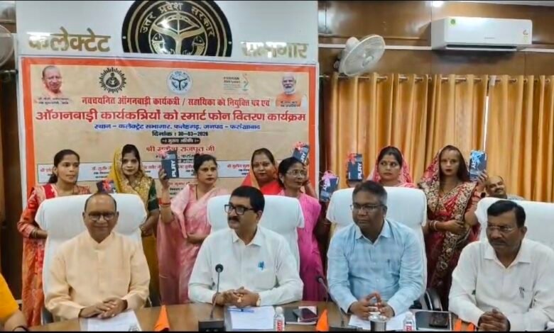 फर्रुखाबाद। कलेक्ट्रेट सभागार में बुधवार को आंगनबाड़ी कार्यकत्रियों एवं सहायिकाओं के लिए नियुक्ति पत्र एवं स्मार्टफोन वितरण कार्यक्रम का आयोजन किया गया। कार्यक्रम की अध्यक्षता जिलाधिकारी आशुतोष कुमार द्विवेदी ने की। इस अवसर पर अमृतपुर विधायक सुशील शाक्य एवं भोजपुर विधायक नागेंद्र सिंह राठौर विशेष रूप से मौजूद रहे।